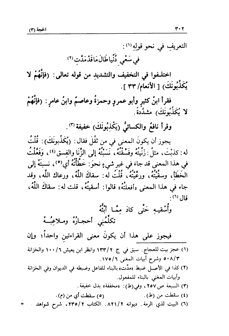 اختلفوا في التخفيف والتشديد من قوله تعالى: فإنهم لا يكذبونك [الأنعام/ 33].