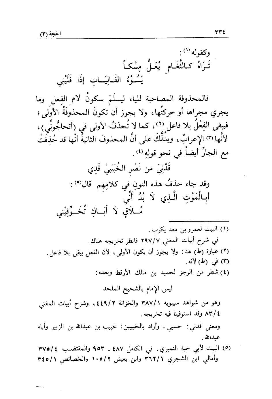 (5) البيت لأبي حية النميري. في الكامل 487 - 953 والمقتضب 4/ 375 وأمالي ابن الشجري 1/ 362 وابن يعيش 2/ 105 والخصائص 1/ 345