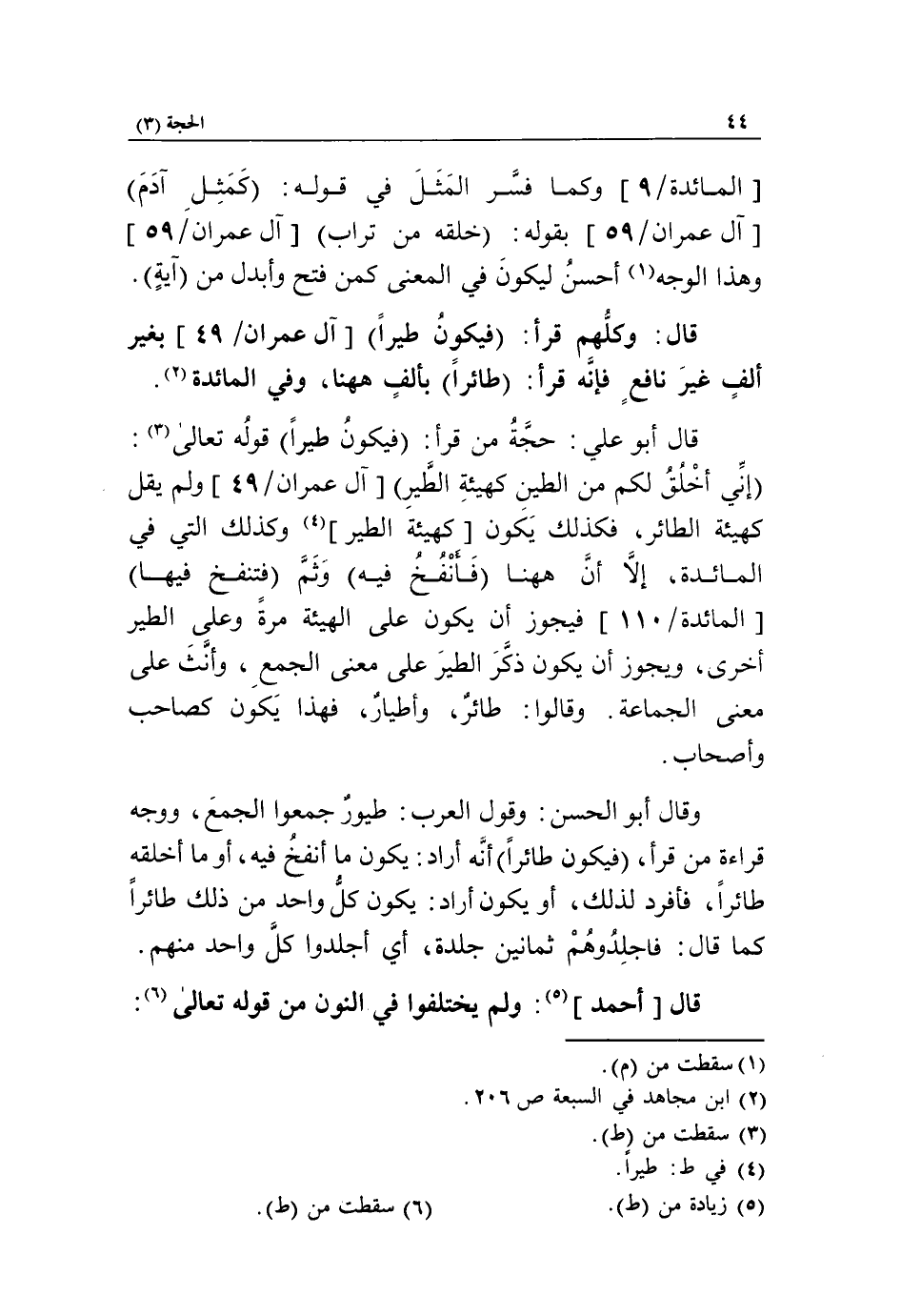 قال أبو علي: حجّة من قرأ: فيكون طيرا قوله تعالى «3»: