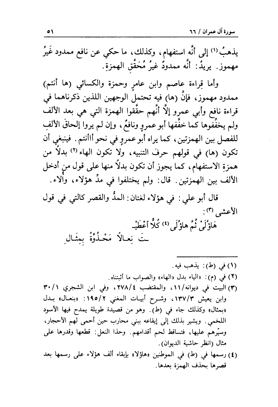 (4) رسمها في (ط) في الموطنين «هاؤلا» بإبقاء ألف هؤلاء على رسمها بعد قصرها بحذف الهمزة بعدها.