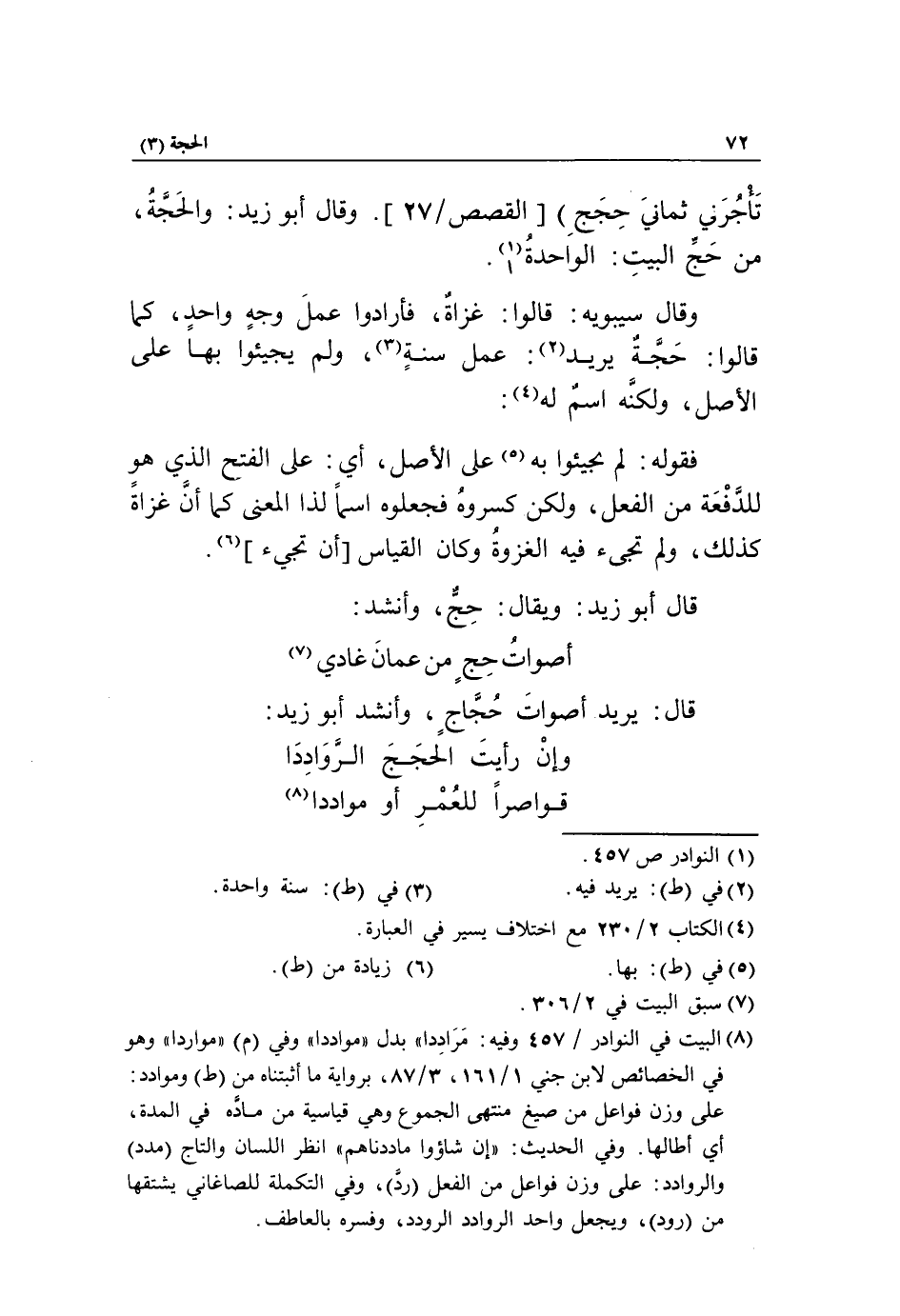 وقال أبو زيد: والحجّة، من حجّ البيت: الواحدة «1».