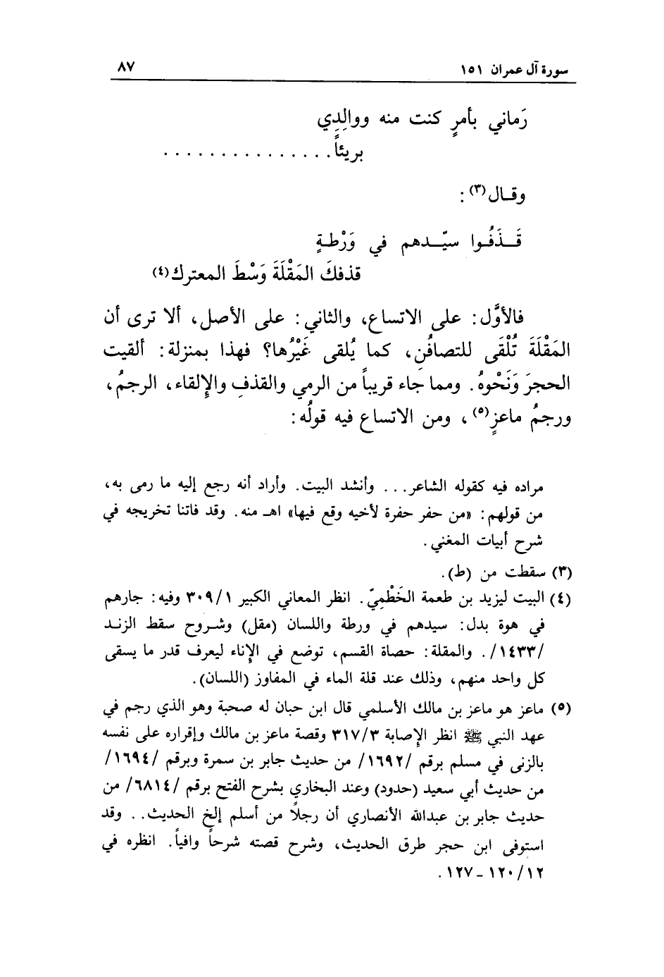 قذفوا سيّدهم في ورطة ... قذفك المقلة وسط المعترك