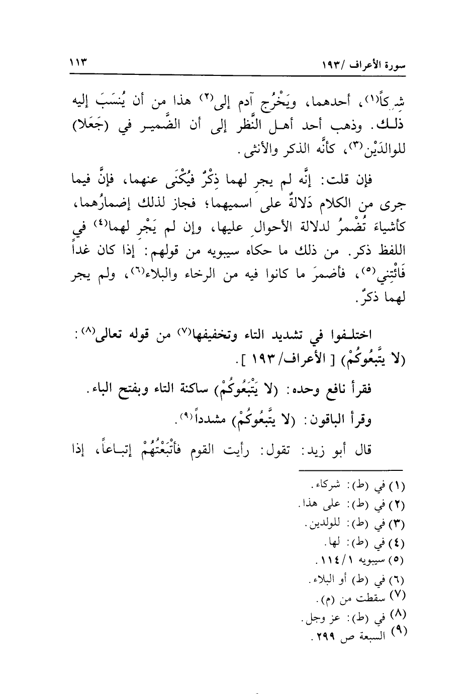 وقرأ الباقون: لا يتبعوكم مشددا «9».
