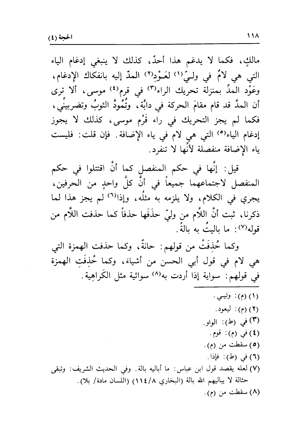 (7) لعله يقصد قول ابن عباس: ما أباليه بالة. وفي الحديث الشريف: وتبقى حثالة لا يباليهم الله بالة (البخاري 8/ 114) (اللسان مادة/ بلا).