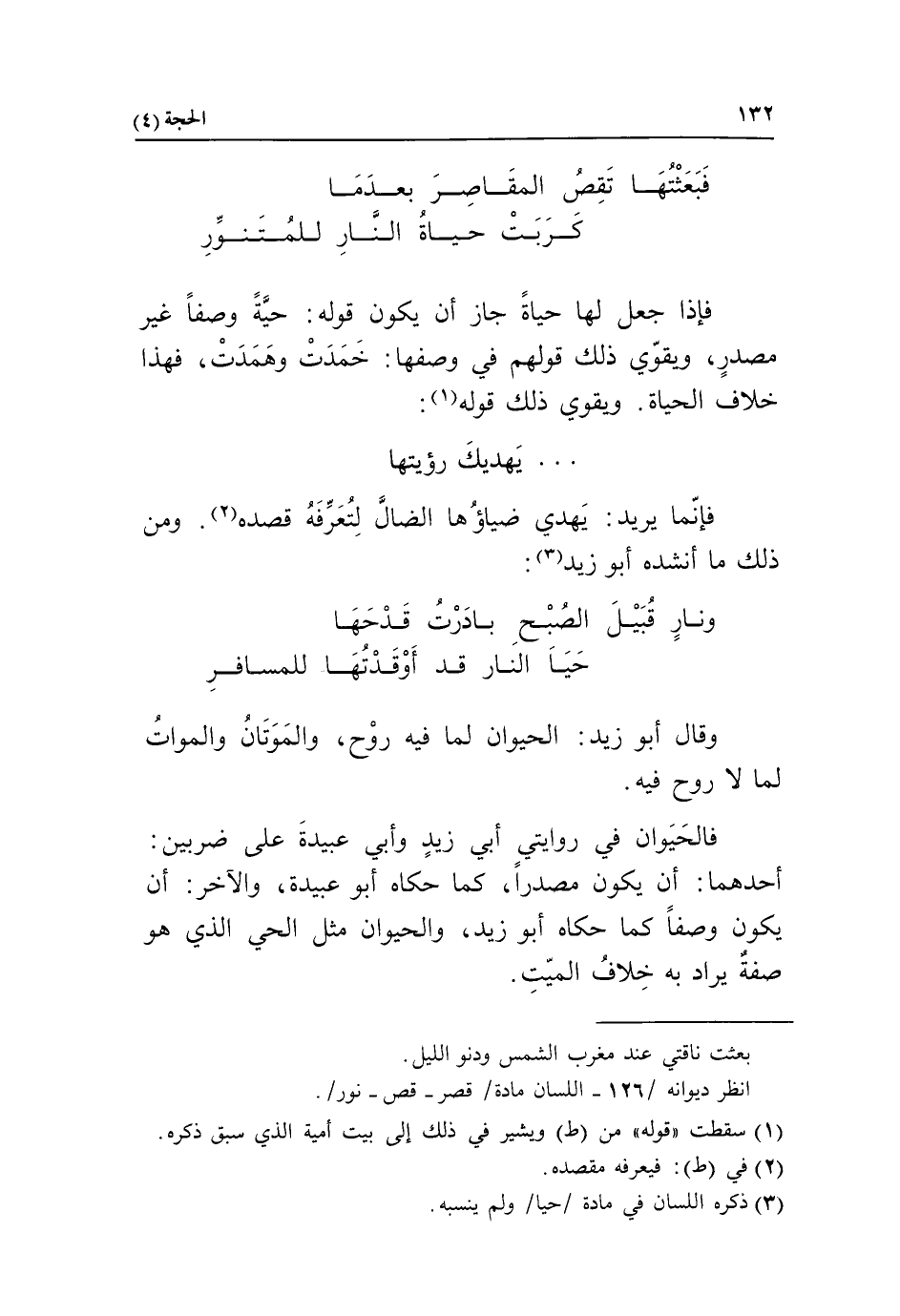 فبعثتها تقص المقاصر بعد ما* كربت حياة النّار للمتنوّر فإذا جعل لها حياة جاز أن يكون قوله: حيّة وصفا غير مصدر، ويقوّي ذلك قولهم في وصفها: خمدت وهمدت، فهذا خلاف الحياة. ويقوي ذلك قوله «1»: