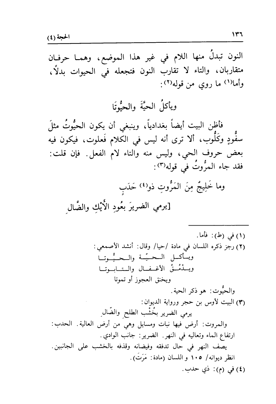 النون تبدل منها اللام في غير هذا الموضع، وهما حرفان متقاربان، والتاء لا تقارب النون فتجعله في الحيوات بدلا، وأما «1» ما روي من قوله «2»: