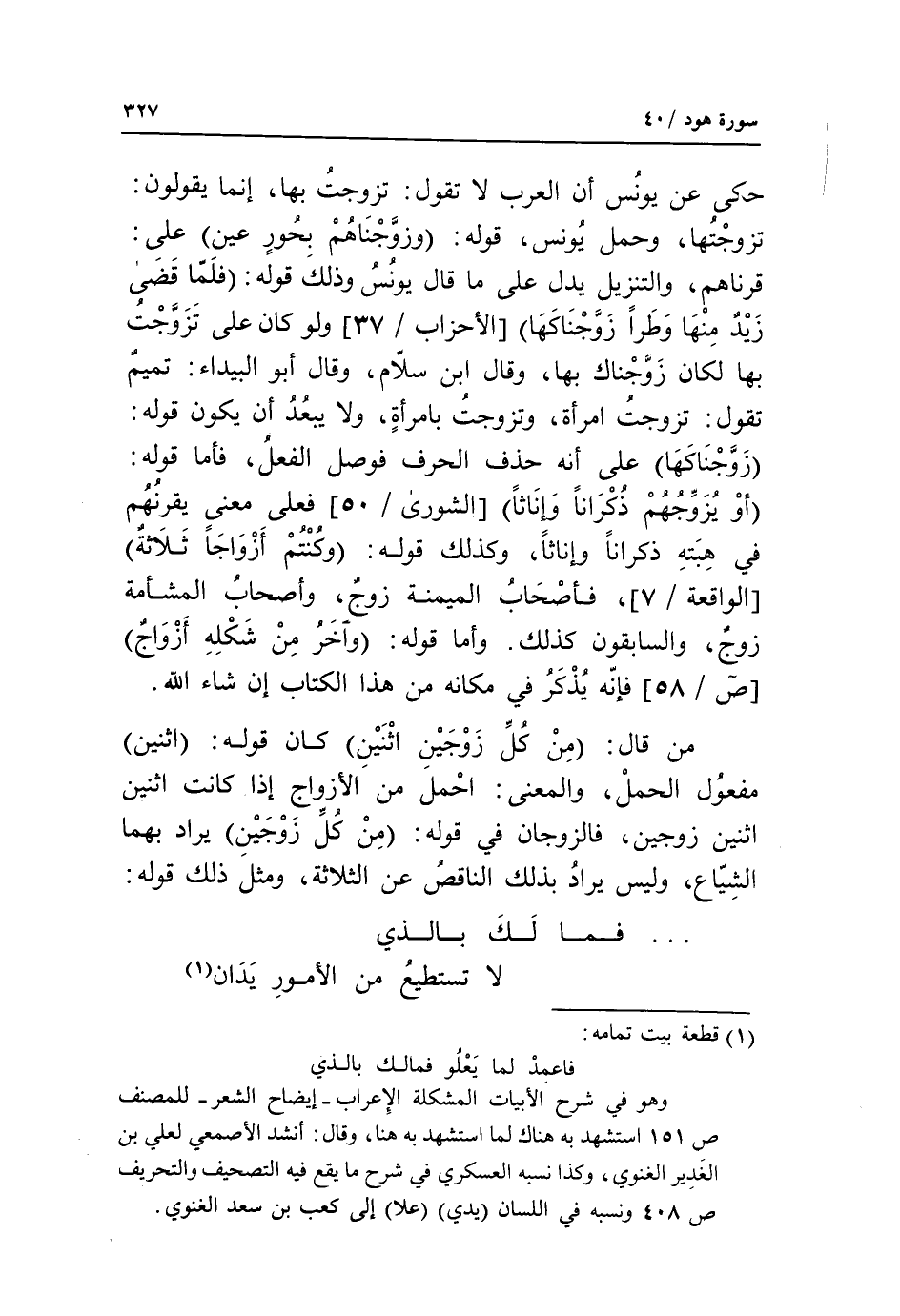 قرناهم، والتنزيل يدل على ما قال يونس وذلك قوله: فلما قضى زيد منها وطرا زوجناكها [الأحزاب/ 37] ولو كان على تزوّجت بها لكان زوّجناك بها، وقال ابن سلّام، وقال أبو البيداء: تميم تقول: تزوجت امرأة، وتزوجت بامرأة، ولا يبعد أن يكون قوله: