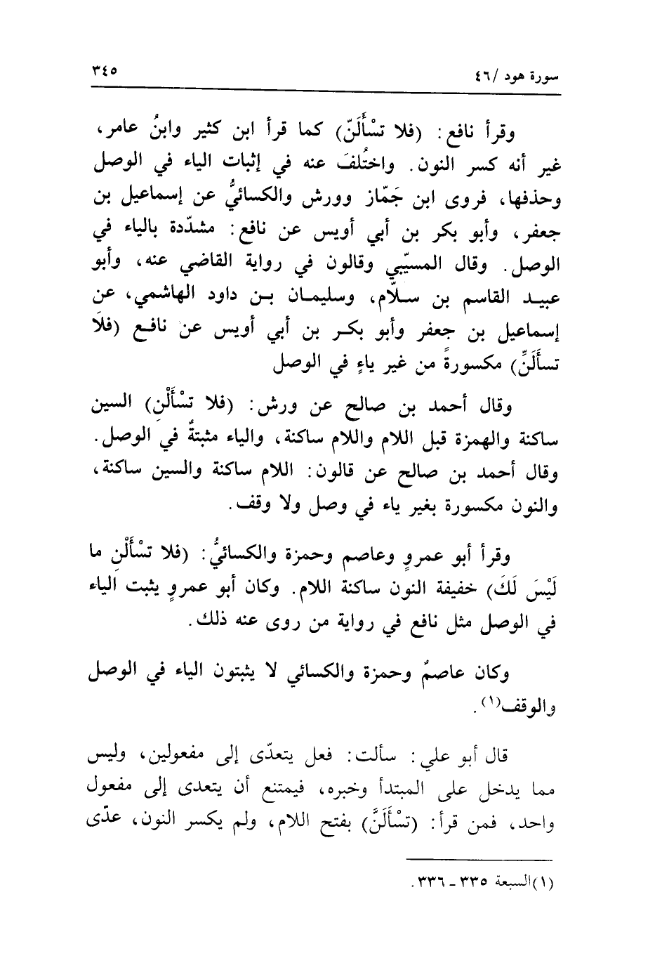(1) السبعة 335 - 336.