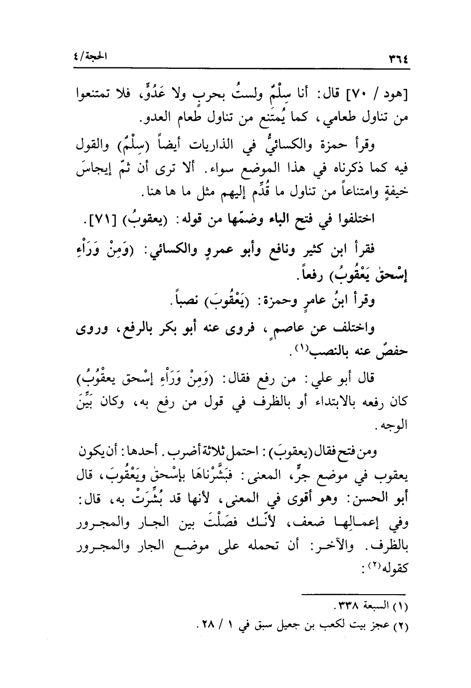 اختلفوا في فتح الباء وضمّها من قوله: يعقوب* [71].