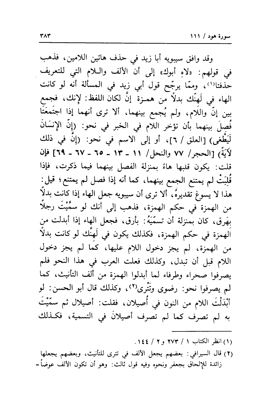 (1) انظر الكتاب 1/ 273 و 2/ 144.