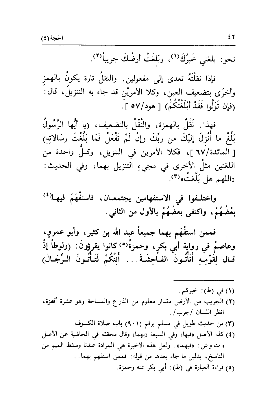 (4) كذا الأصل «فيها» وفي السبعة «بهما» وقال محققه في الحاشية عن الأصل وت وش: «فيهما». ولعل هذه الأخيرة هي المرادة عندنا وسقط الميم من الناسخ، بدليل ما جاء بعدها من قوله: فممن استفهم بهما ..