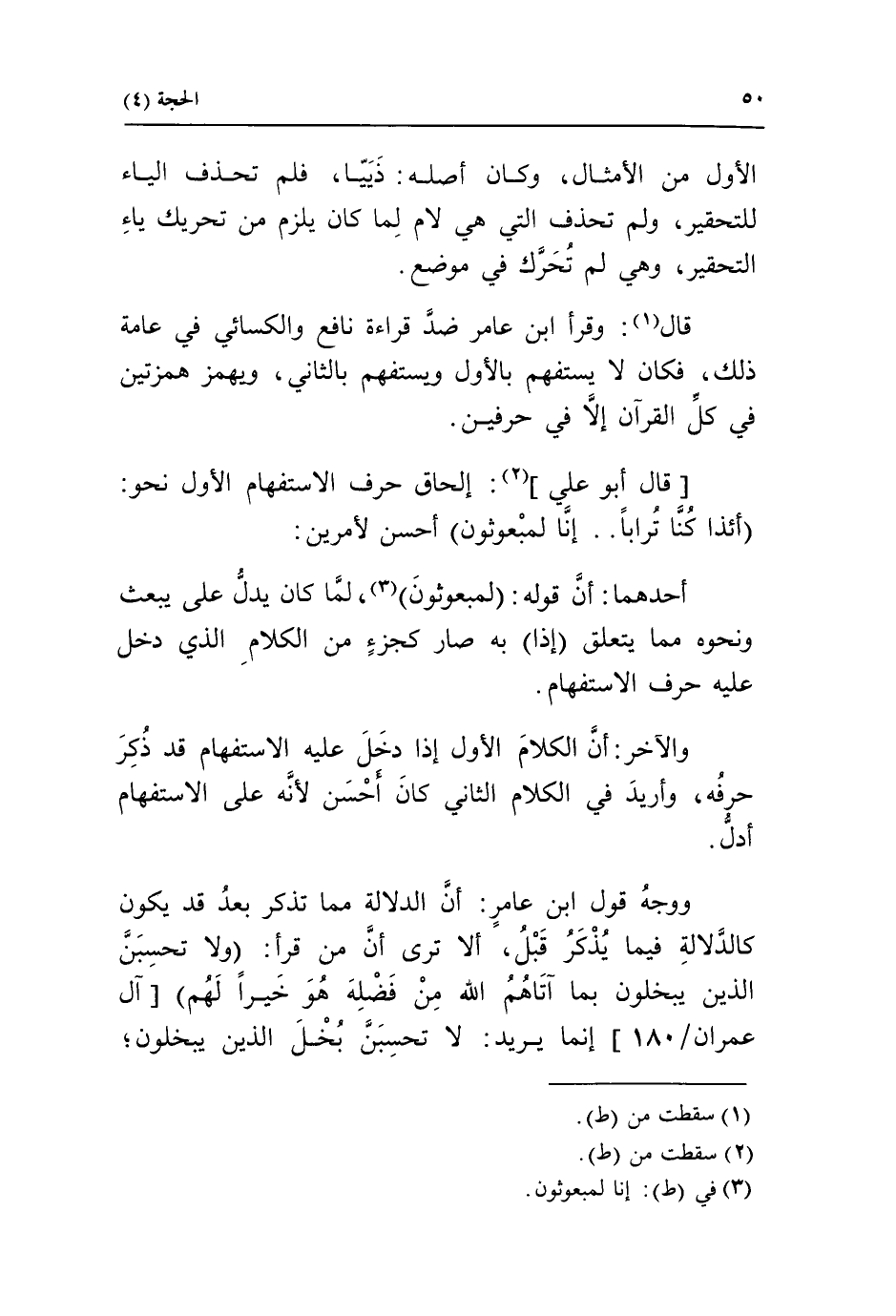 [قال أبو علي] «2»: إلحاق حرف الاستفهام الأول نحو: