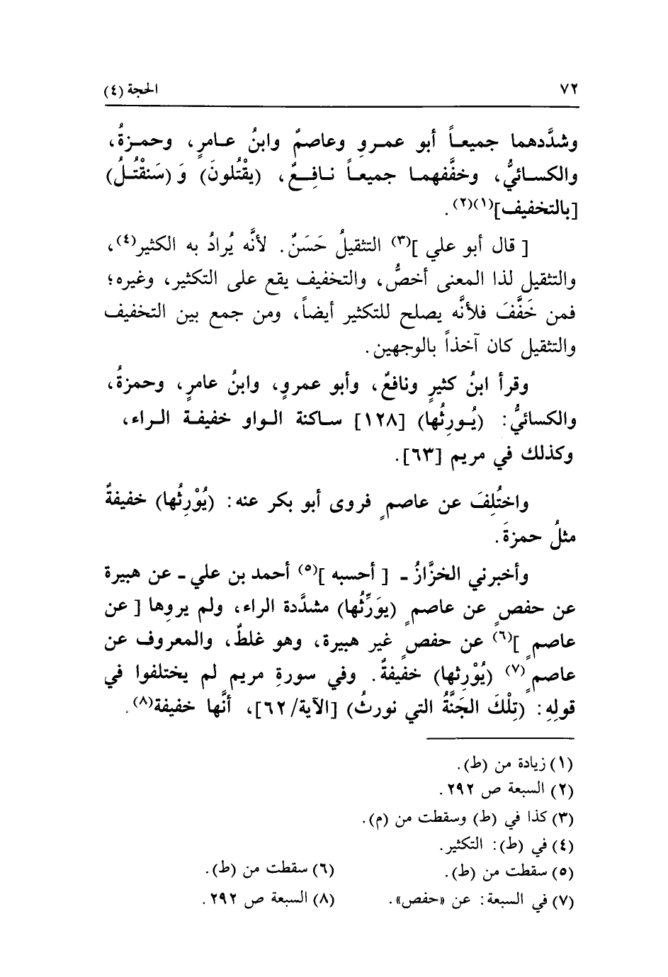 (8) السبعة ص 292.