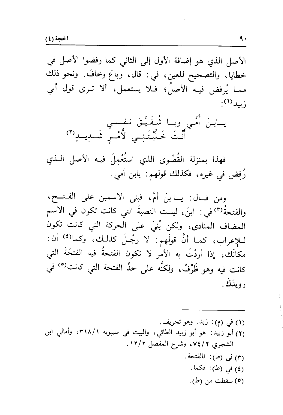 «2» فهذا بمنزلة القصوى الذي استعمل فيه الأصل الذي رفض في غيره، فكذلك قولهم: يا ابن أمي.