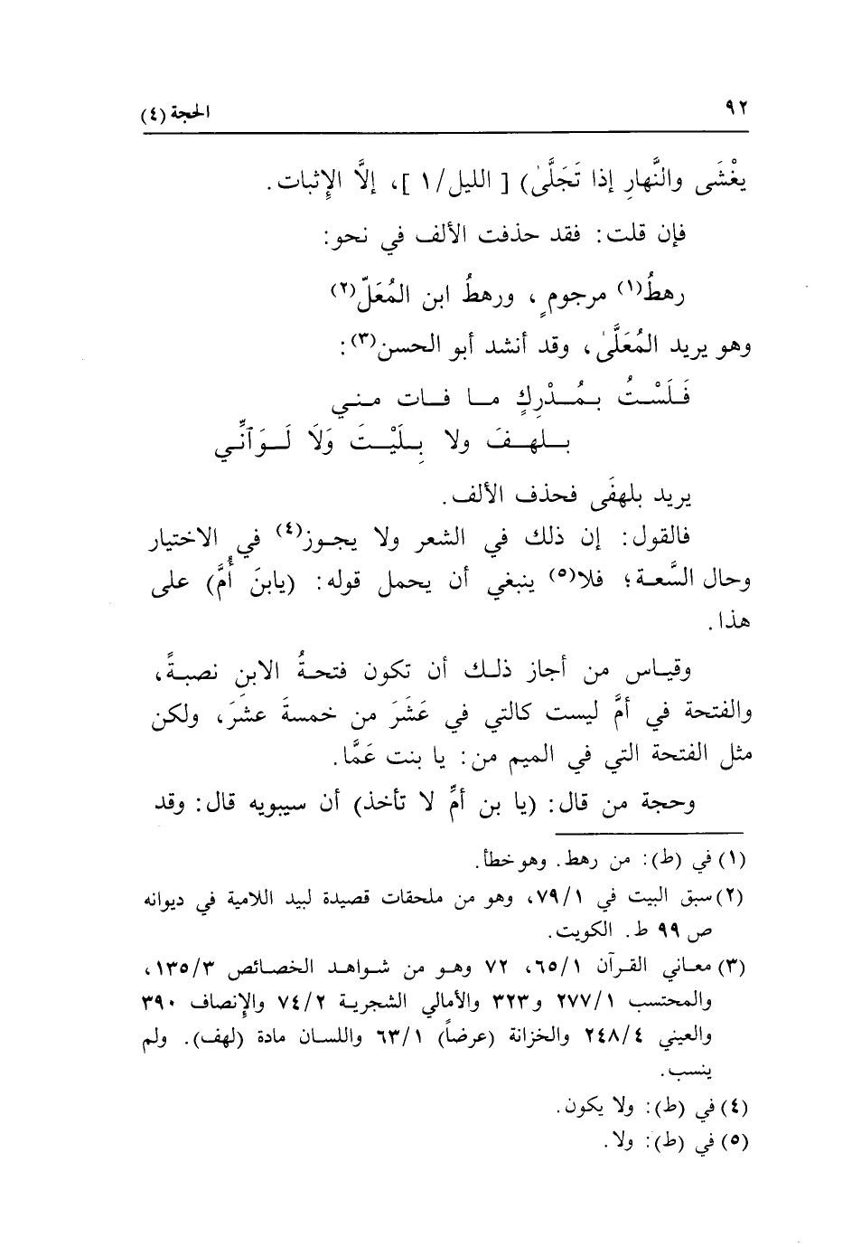 (3) معاني القرآن 1/ 65، 72 وهو من شواهد الخصائص 3/ 135، والمحتسب 1/ 277 و 323 والأمالي الشجرية 2/ 74 والإنصاف 390 والعيني 4/ 248 والخزانة (عرضا) 1/ 63 واللسان مادة (لهف). ولم ينسب.