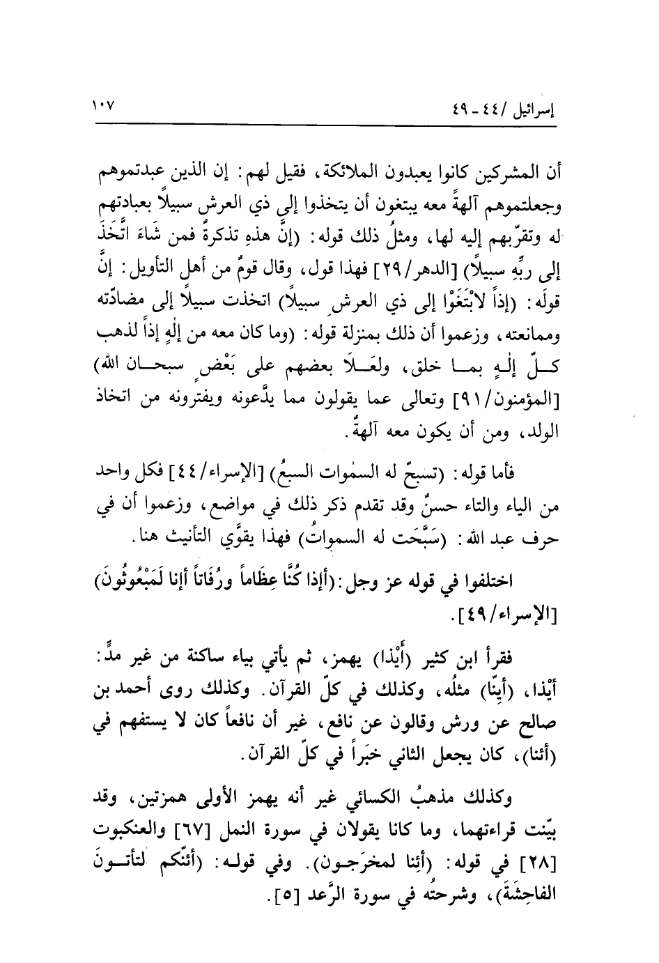 أيذا، (أينّا) مثله، وكذلك في كلّ القرآن. وكذلك روى أحمد بن صالح عن ورش وقالون عن نافع، غير أن نافعا كان لا يستفهم في أئنا، كان يجعل الثاني خبرا في كلّ القرآن.