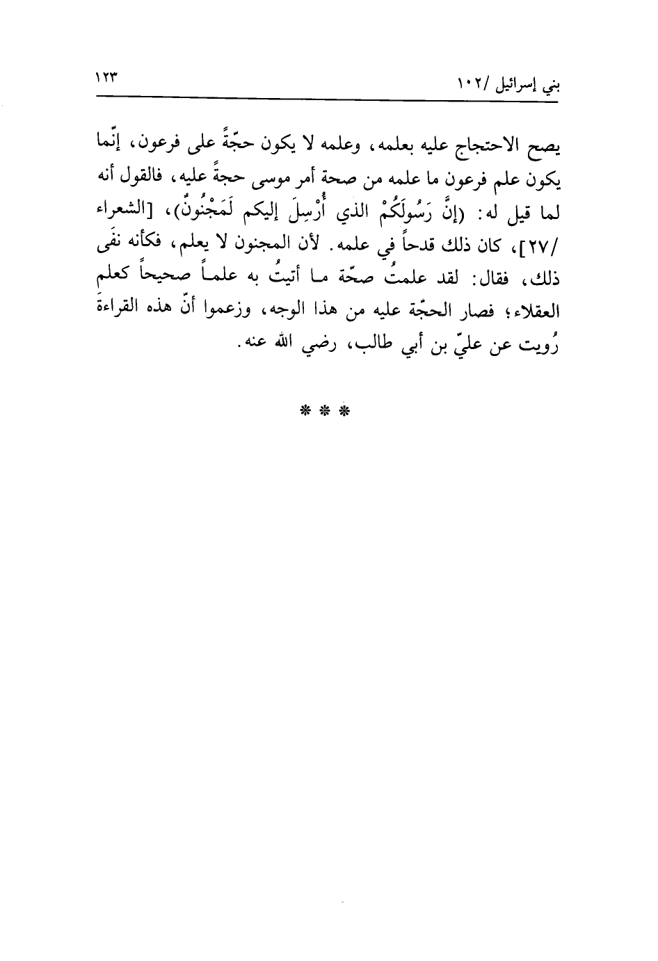 يصح الاحتجاج عليه بعلمه، وعلمه لا يكون حجّة على فرعون، إنّما يكون علم فرعون ما علمه من صحة أمر موسى حجة عليه، فالقول أنه لما قيل له: إن رسولكم الذي أرسل إليكم لمجنون، [الشعراء/ 27]، كان ذلك قدحا في علمه. لأن المجنون لا يعلم، فكأنه نفى ذلك، فقال: لقد علمت صحّة ما أتيت به علما صحيحا كعلم العقلاء، فصار الحجّة عليه من هذا الوجه، وزعموا أنّ هذه القراءة رويت عن عليّ بن أبي طالب، رضي الله عنه.