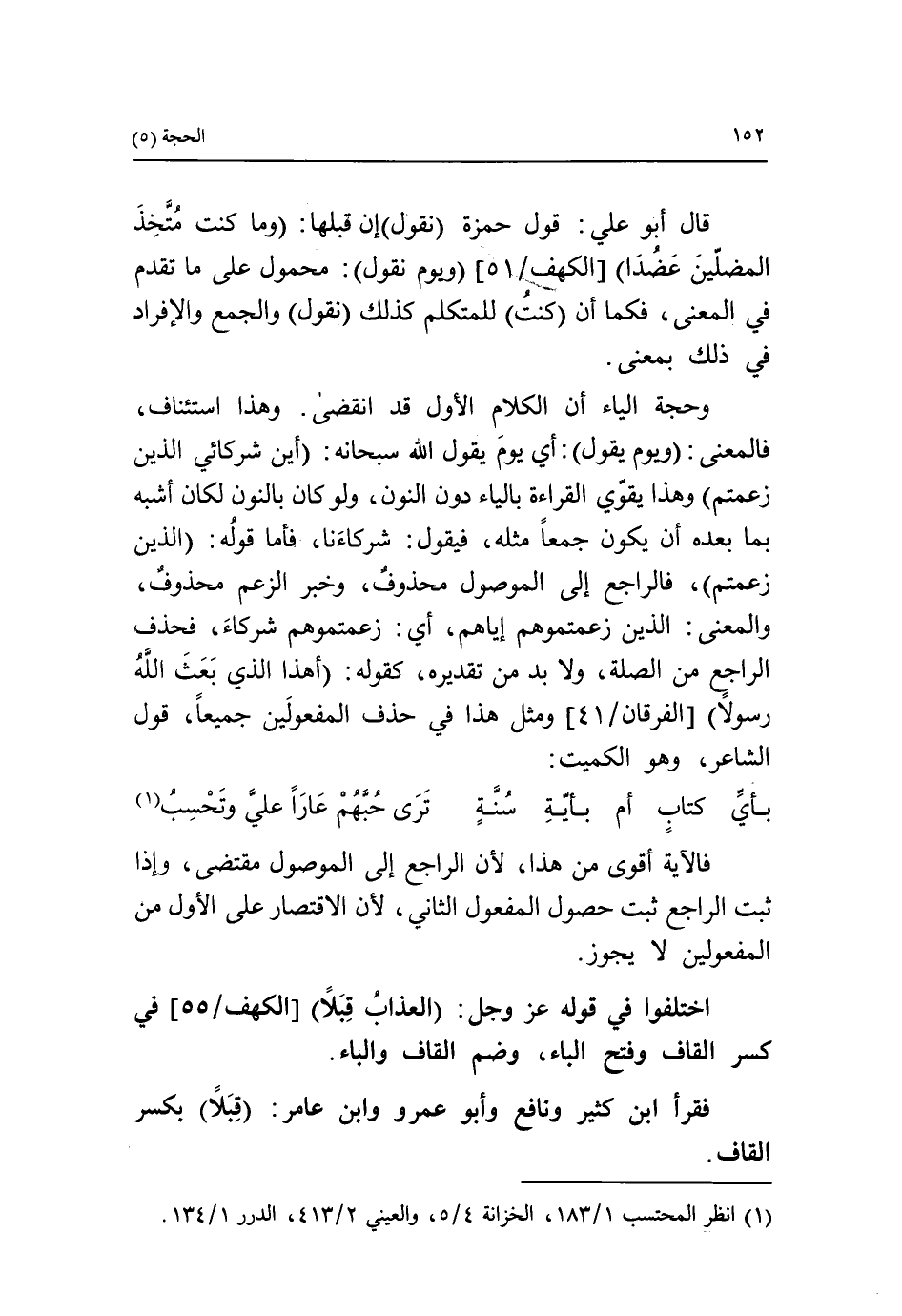 (1) انظر المحتسب 1/ 183، الخزانة 4/ 5، والعيني 2/ 413، الدرر 1/ 134.