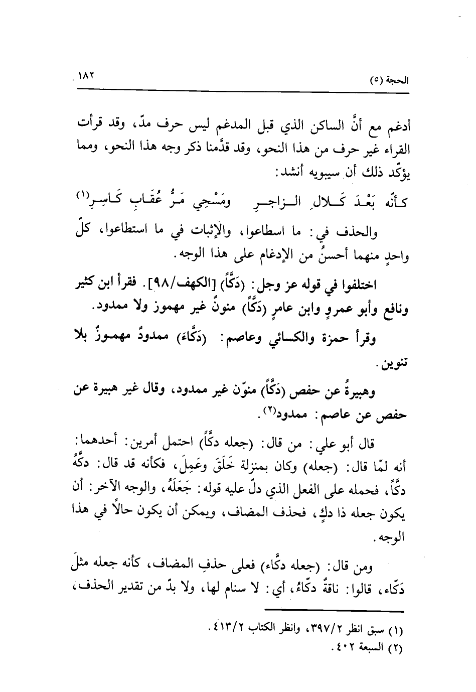 أدغم مع أنّ الساكن الذي قبل المدغم ليس حرف مدّ، وقد قرأت القراء غير حرف من هذا النحو، وقد قدّمنا ذكر وجه هذا النحو، ومما يؤكّد ذلك أن سيبويه أنشد: