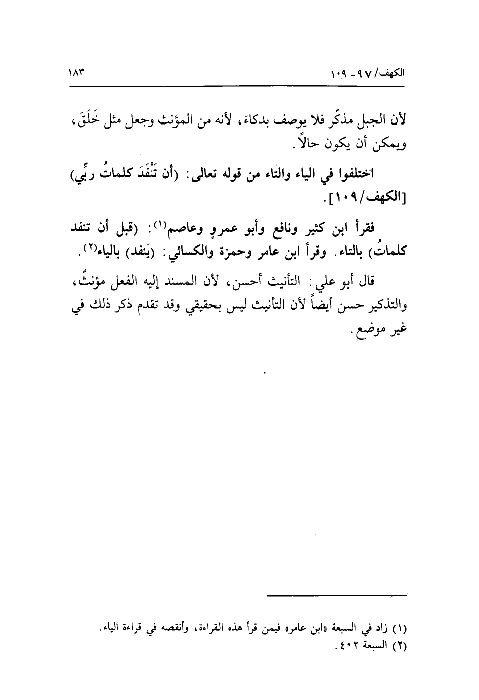 اختلفوا في الياء والتاء من قوله تعالى: أن تنفد كلمات ربي [الكهف/ 109].