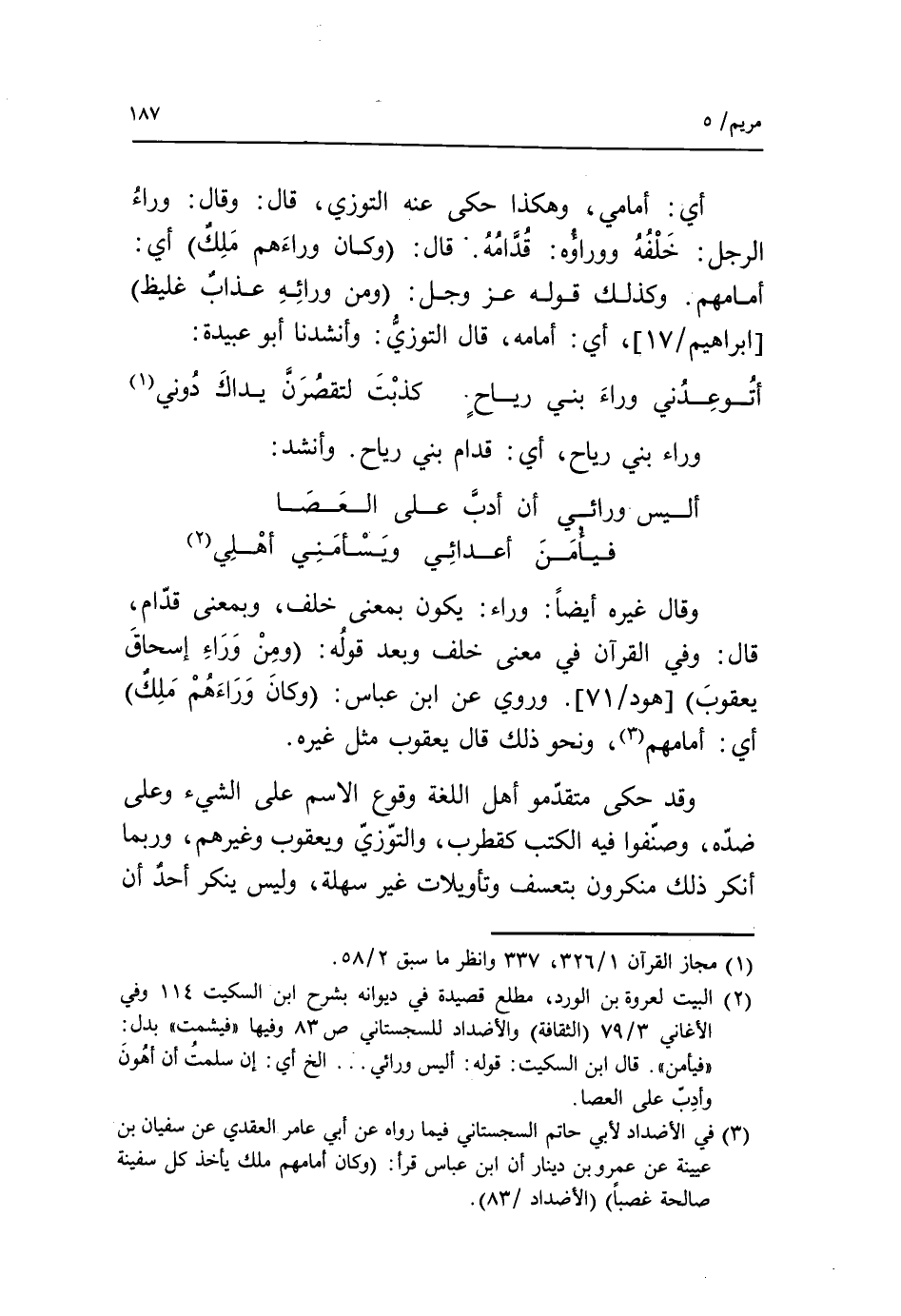 (1) مجاز القرآن 1/ 326، 337 وانظر ما سبق 2/ 58.