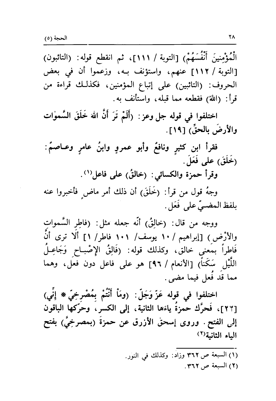 (2) السبعة ص 362.