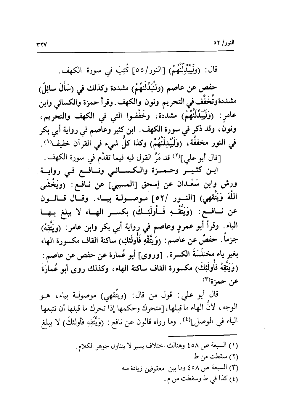 (1) السبعة ص 458 وهنا لك اختلاف يسير لا يتناول جوهر الكلام.
