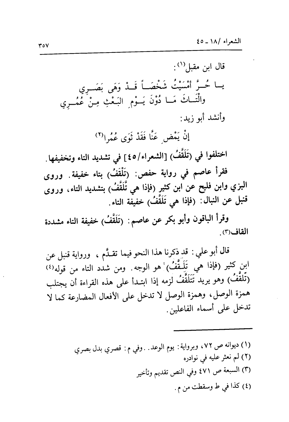 (3) السبعة ص 471 وفي النص تقديم وتأخير.