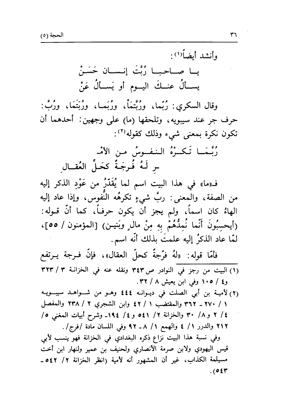 (2) لأمية بن أبي الصلت في ديوانه 444 وهو من شواهد سيبويه 1/ 270 - 362 والمقتضب 1/ 42 وابن الشجري 2/ 238 والمفصل 4/ 2 و 8/ 30 والخزانة 2/ 541 و 4/ 194 - وشرح أبيات المغني 5/ 212 والدرر 1/ 4 والهمع 1/ 8 - 92 وفي اللسان مادة/ فرج/.