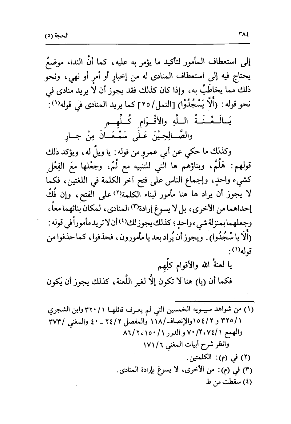 (3) في (م): من الأخرى، لا يسوغ بإرادة المنادى.