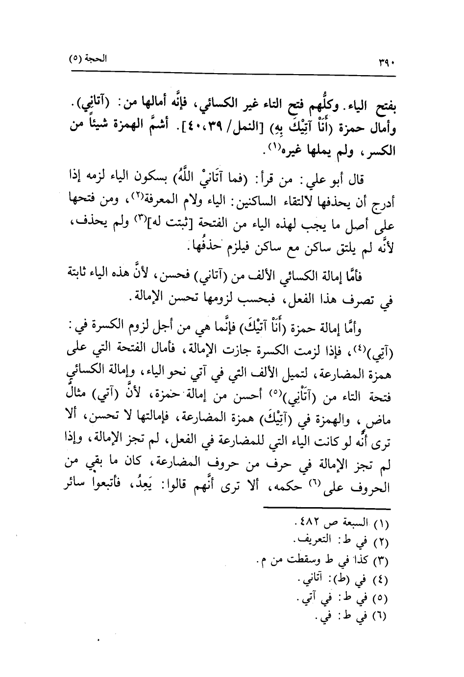 وأمّا إمالة حمزة أنا آتيك فإنّما هي من أجل لزوم الكسرة في: