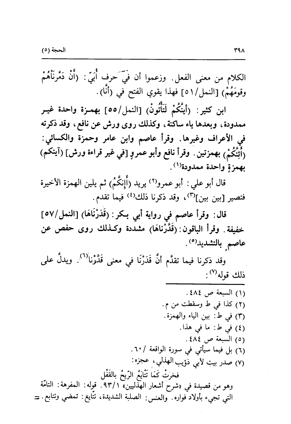 وقد ذكرنا فيما تقدّم أنّ قدرنا في معنى قدّرنا «6». ويدلّ على ذلك قوله «7»: