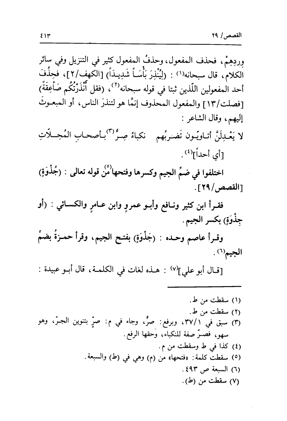 اختلفوا في ضمّ الجيم وكسرها وفتحها «5» من قوله تعالى: (جذوة) [القصص/ 29].