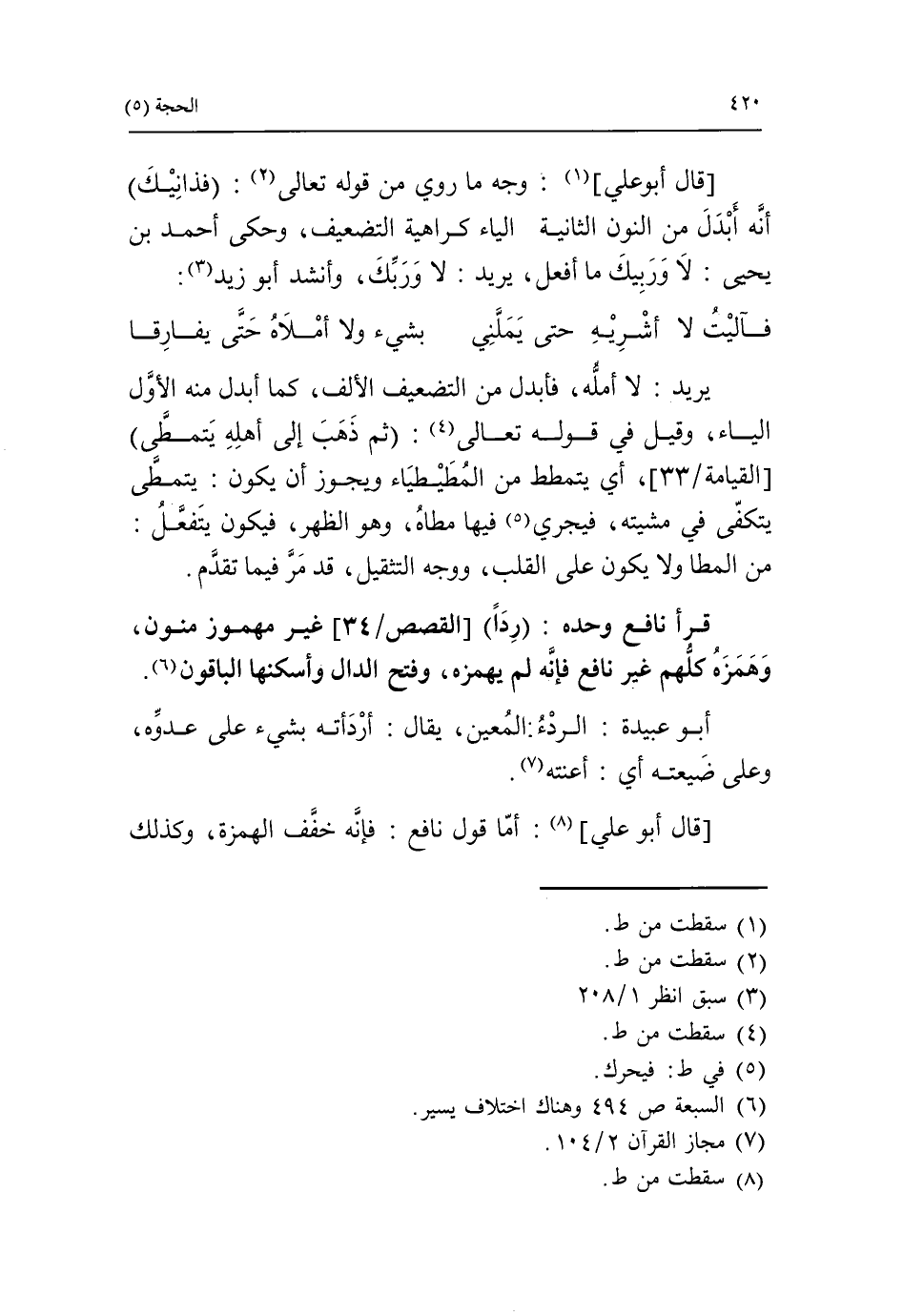 (6) السبعة ص 494 وهناك اختلاف يسير.
