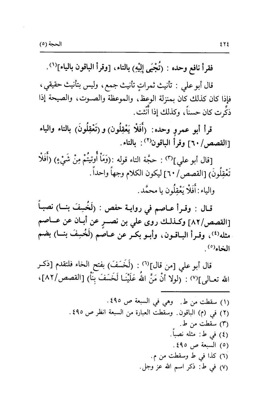 (1) سقطت من ط. وهي في السبعة ص 495.