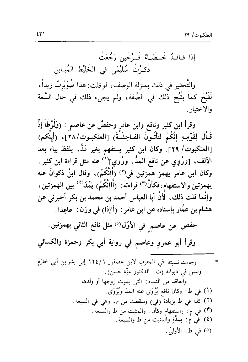 (2) كذا في ط بزيادة (في) وسقطت من م، وهي في السبعة.