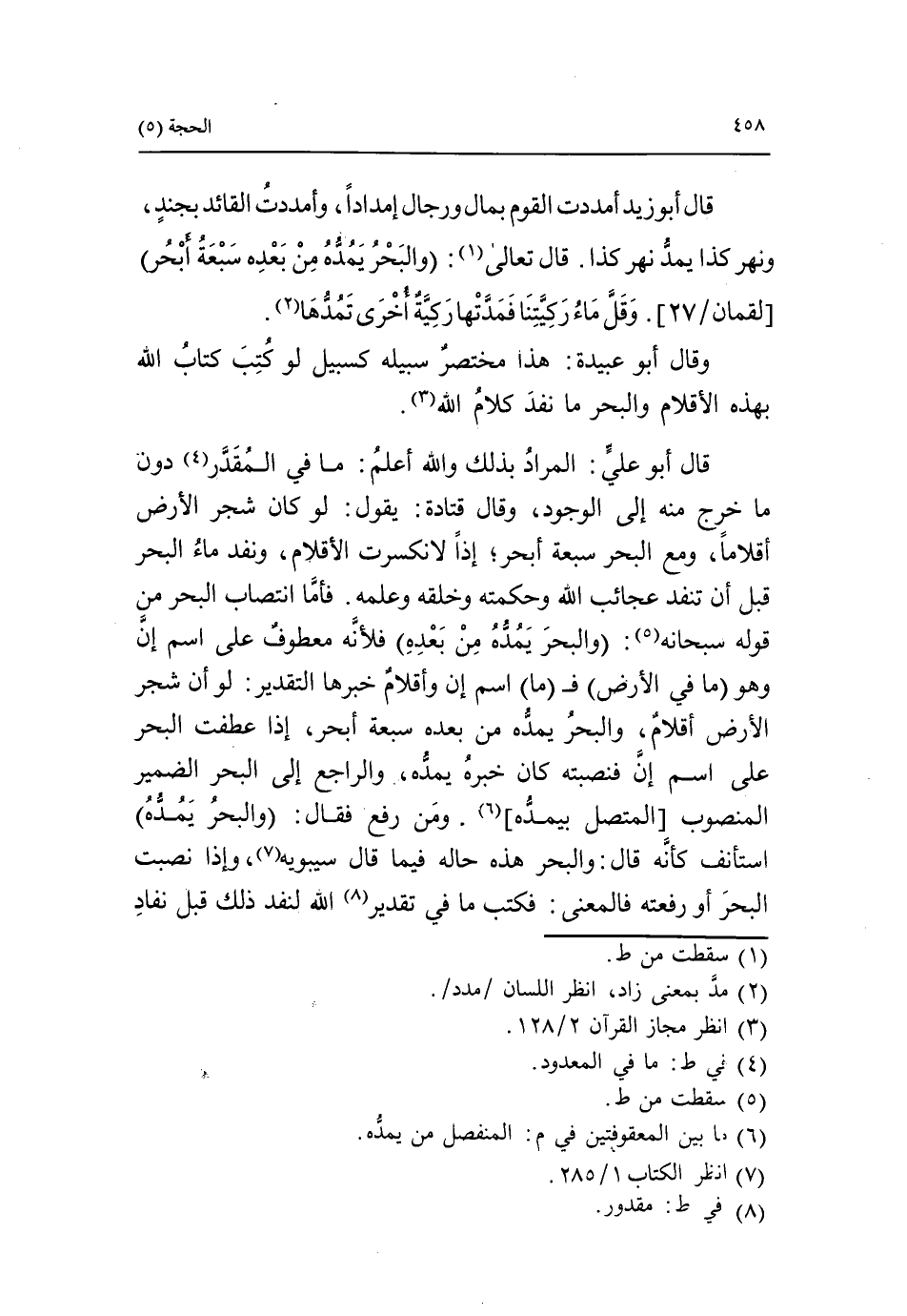 وقال أبو عبيدة: هذا مختصر سبيله كسبيل لو كتب كتاب الله بهذه الأقلام والبحر ما نفد كلام الله «3».