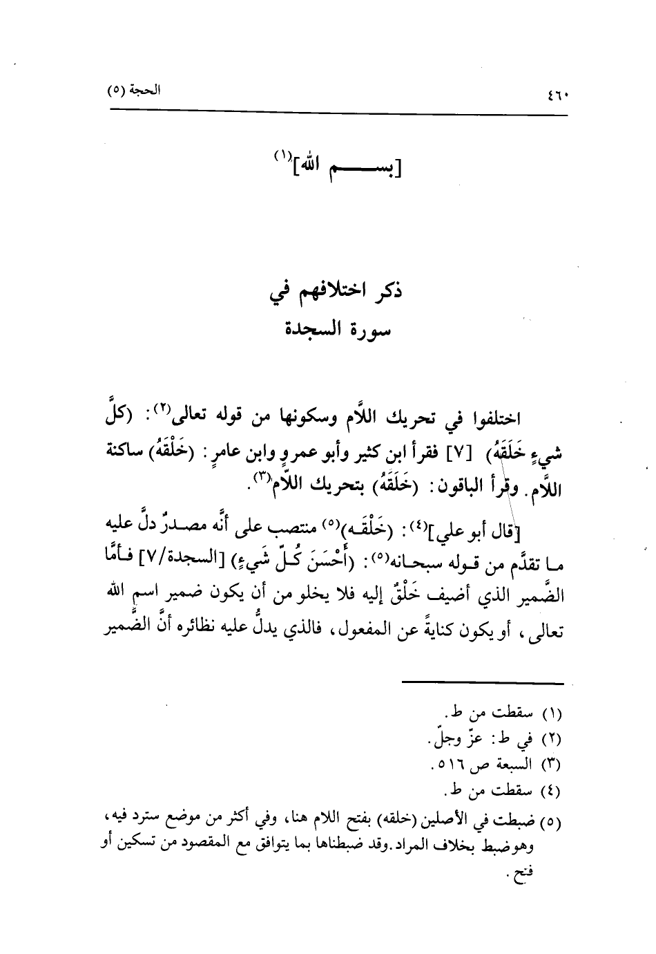 (5) ضبطت في الأصلين (خلقه) بفتح اللام هنا، وفي أكثر من موضع سترد فيه، وهو ضبط بخلاف المراد. وقد ضبطناها بما يتوافق مع المقصود من تسكين أو فتح.