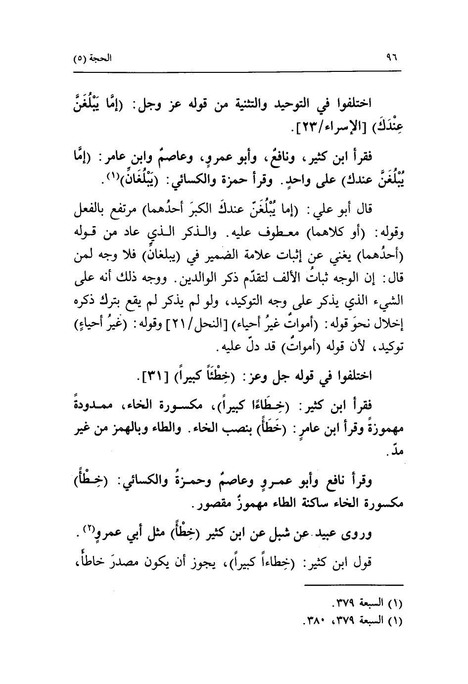 وروى عبيد عن شبل عن ابن كثير خطأ مثل أبي عمرو «2».