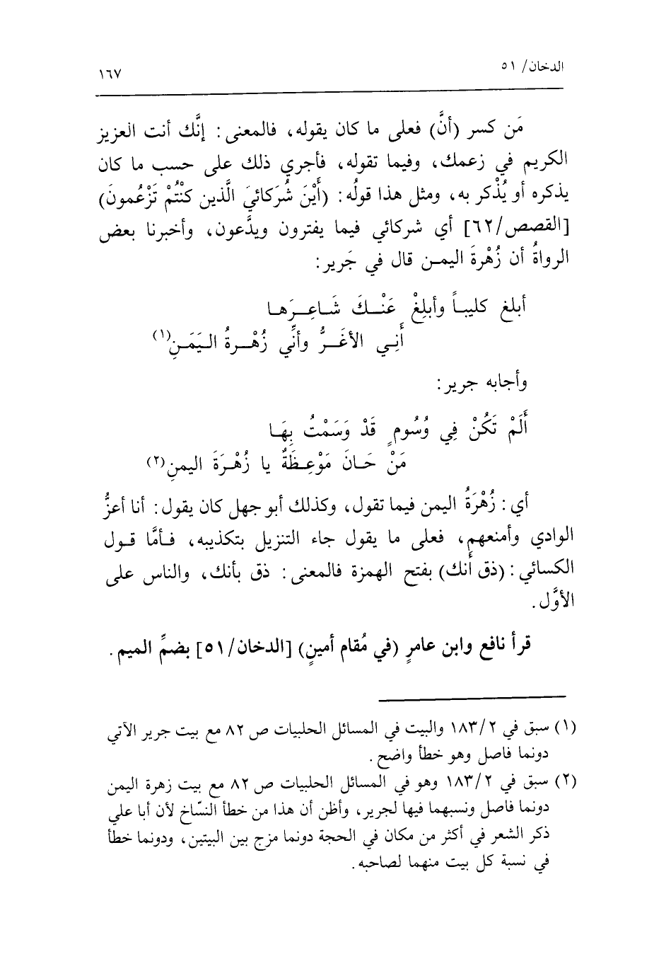 (1) سبق في 2/ 183 والبيت في المسائل الحلبيات ص 82 مع بيت جرير الآتي دونما فاصل وهو خطأ واضح.