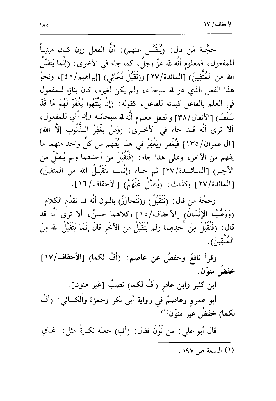 (1) السبعة ص 597.