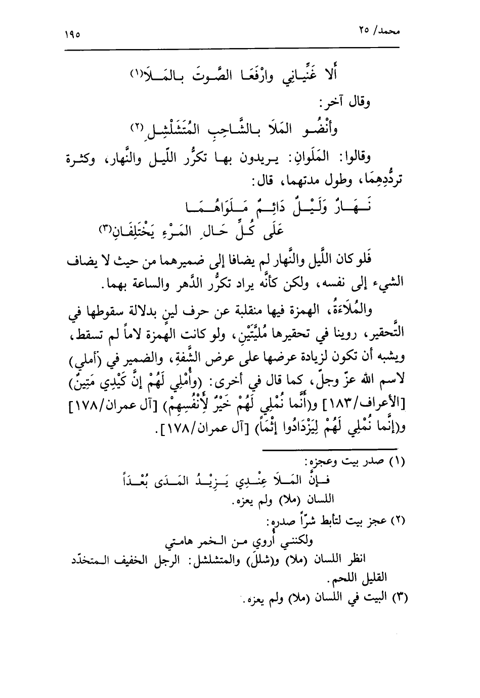 (3) البيت في اللسان (ملا) ولم يعزه.