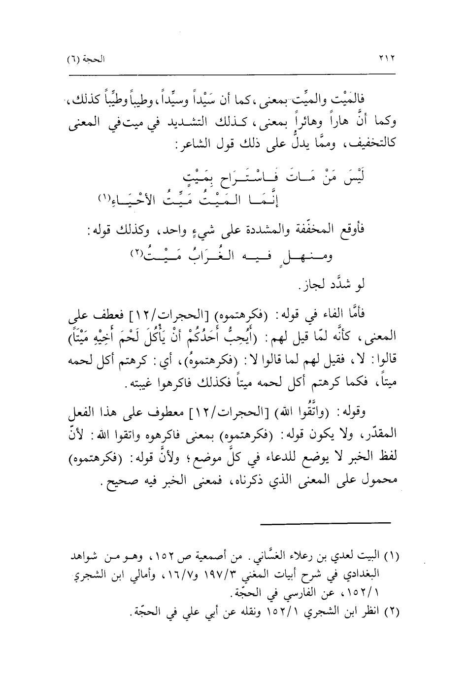 (2) انظر ابن الشجري 1/ 152 ونقله عن أبي علي في الحجّة.