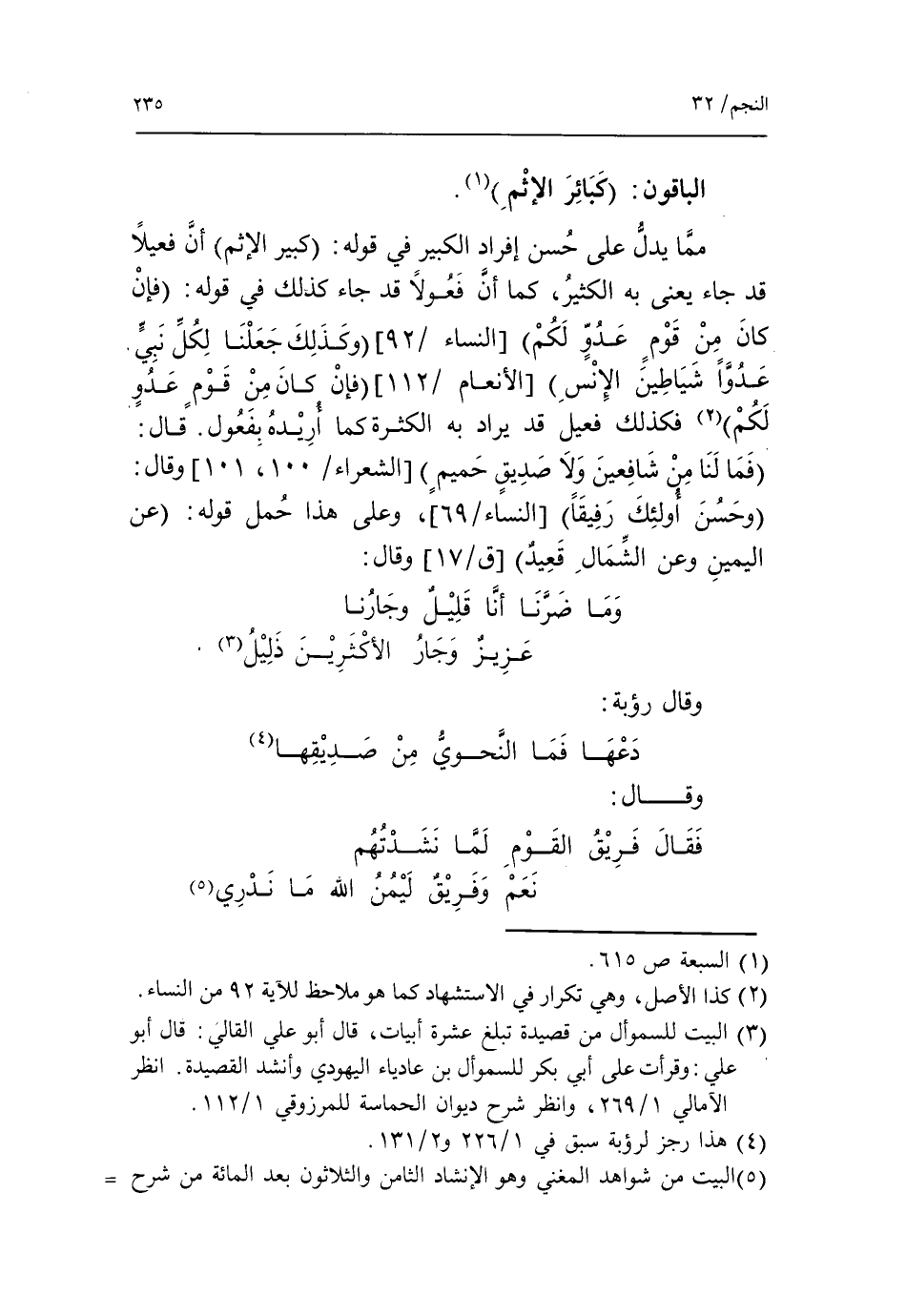 (2) كذا الأصل، وهي تكرار في الاستشهاد كما هو ملاحظ للآية 92 من النساء.