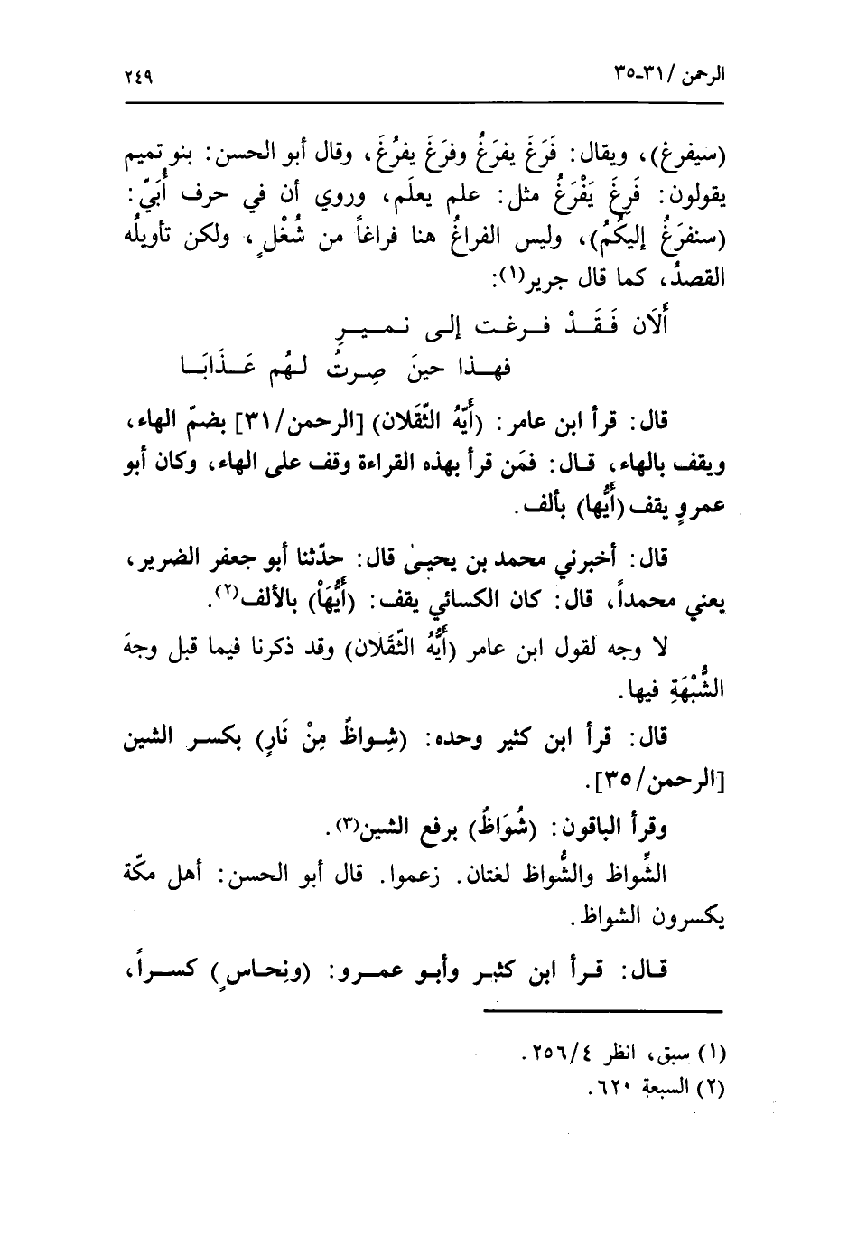 سنفرغ إليكم، وليس الفراغ هنا فراغا من شغل، ولكن تأويله القصد، كما قال جرير «1»: