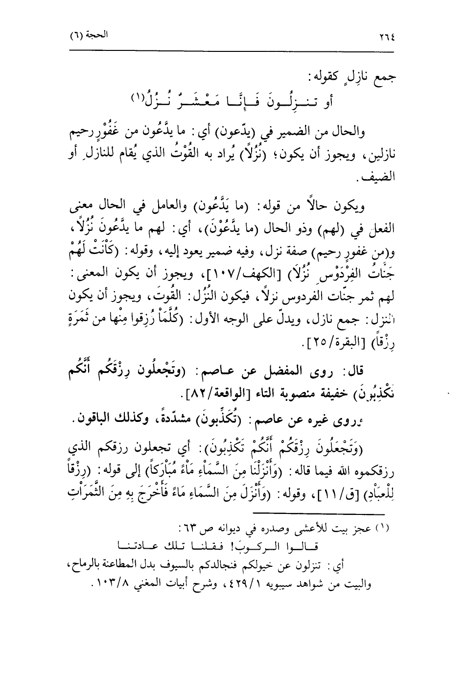 قال: روى المفضل عن عاصم: وتجعلون رزقكم أنكم تكذبون خفيفة منصوبة التاء [الواقعة/ 82].