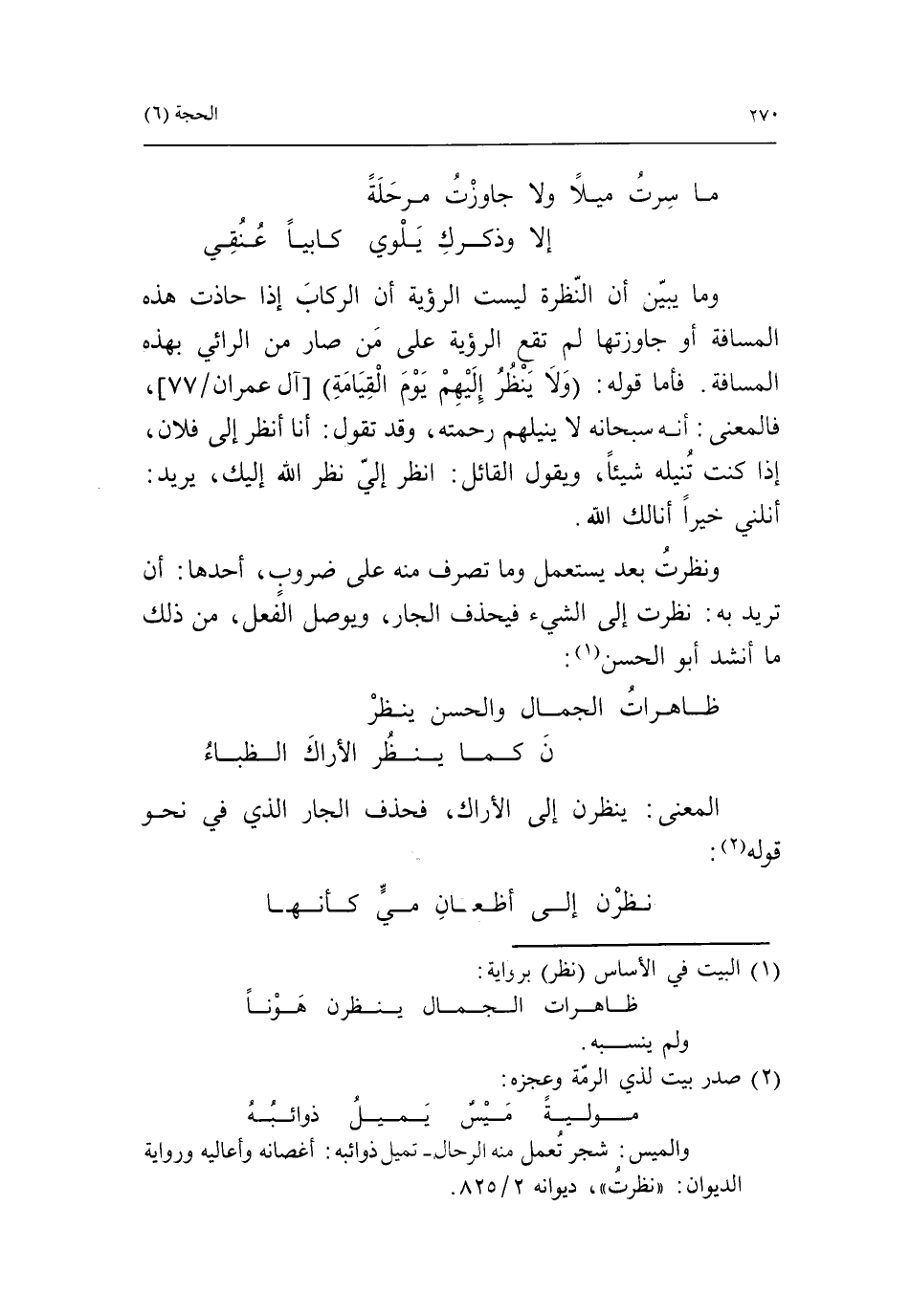 ظاهرات الجمال والحسن ينظر ن كما ينظر الأراك الظباء المعنى: ينظرن إلى الأراك، فحذف الجار الذي في نحو قوله «2»: