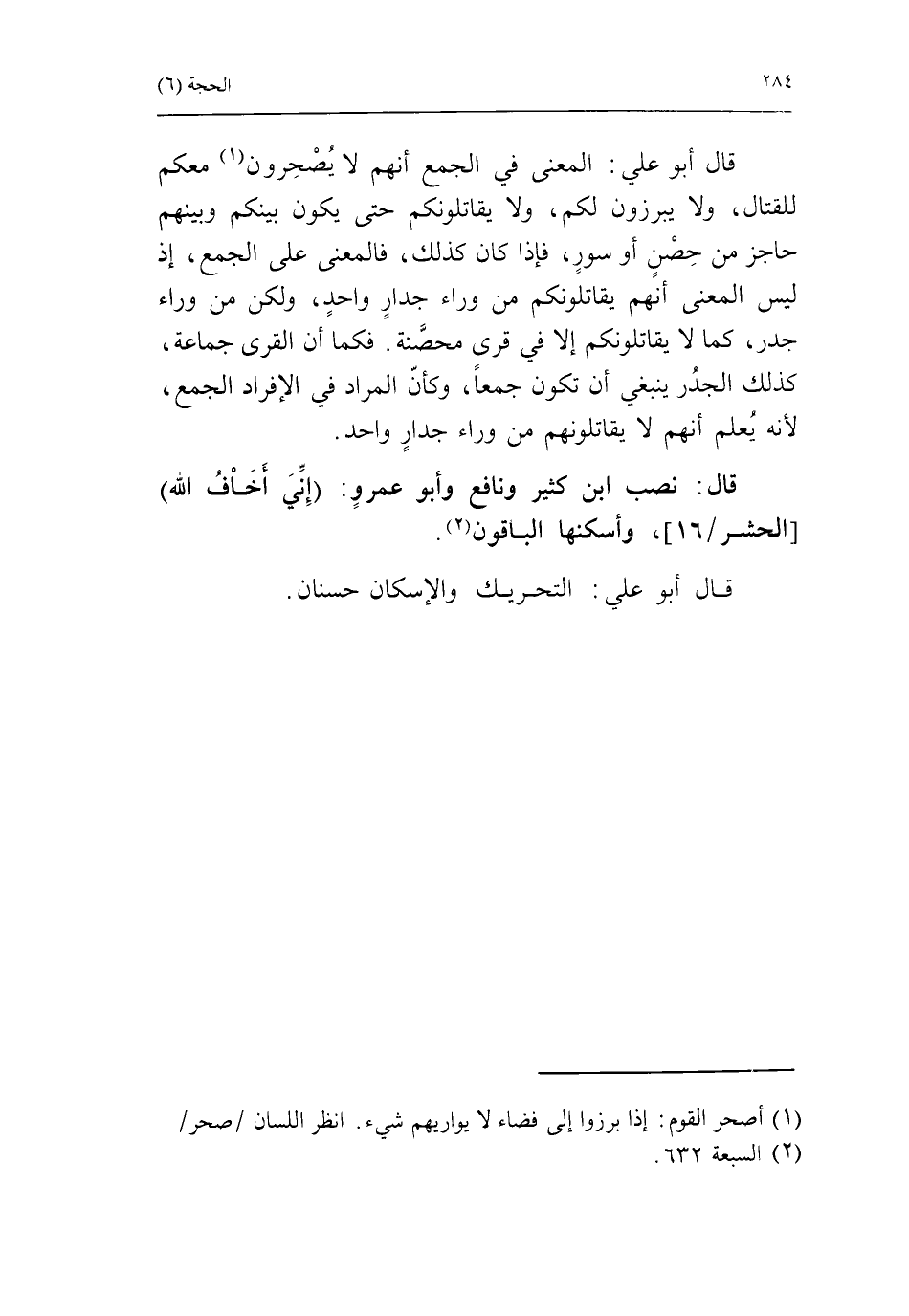 (1) أصحر القوم: إذا برزوا إلى فضاء لا يواريهم شيء. انظر اللسان/ صحر/