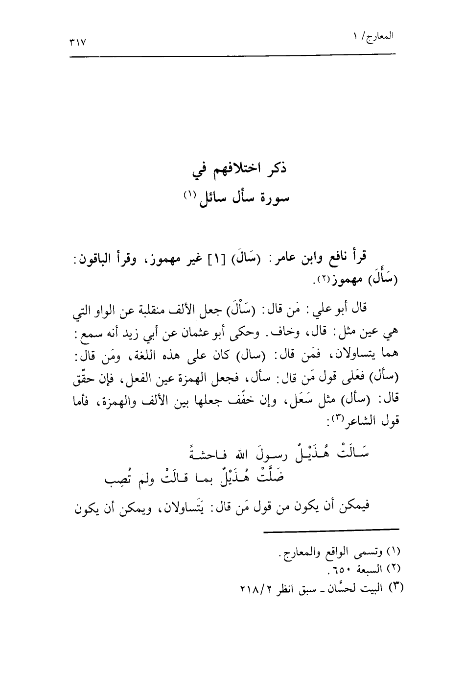 قرأ نافع وابن عامر: سال [1] غير مهموز، وقرأ الباقون:
