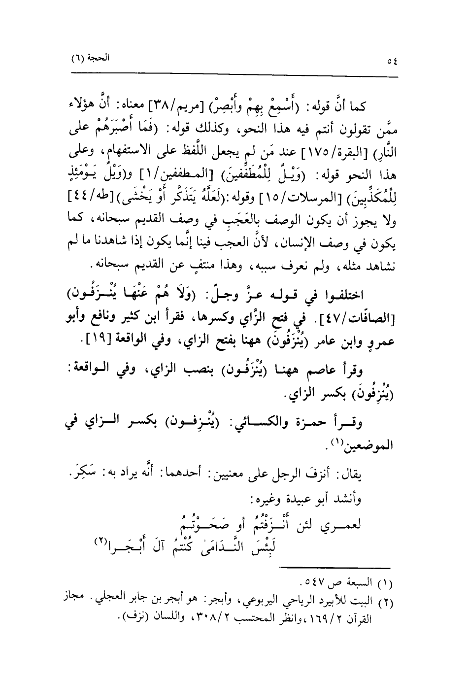 (2) البيت للأبيرد الرياحي اليربوعي، وأبجر: هو أبجر بن جابر العجلي. مجاز القرآن 2/ 169، وانظر المحتسب 2/ 308، واللسان (نزف).